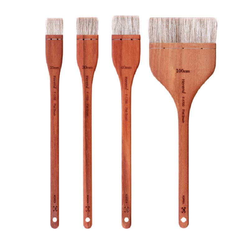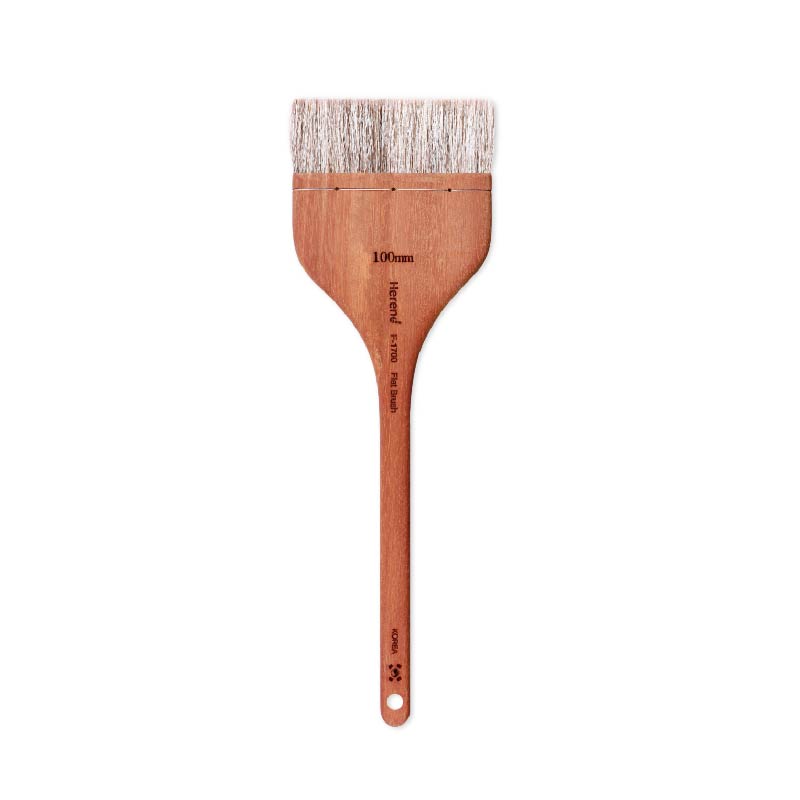 Brocha herend de pelo de cabra con mango largo de madera, tiene gran capacidad de absorción, flexibilidad y elasticidad. Excelente cohesión del pelo. Pincelada suave y sin marcas. Unido con un atado tradicional de latón. Especialmente diseñada para aguadas y acuarela, así como para cubrir grandes fondos.