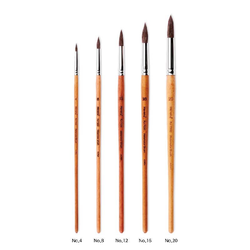 Pincel redondo Herend RJ 7000 de pelo natural de mangosta. Mango largo de madera natural de agradable tacto y diseño perfecto para el control de la pincelada. Pelo natural de alta calidad muy absorbente, flexible y elástico. Pincelada sin marcas. Virola de latón.