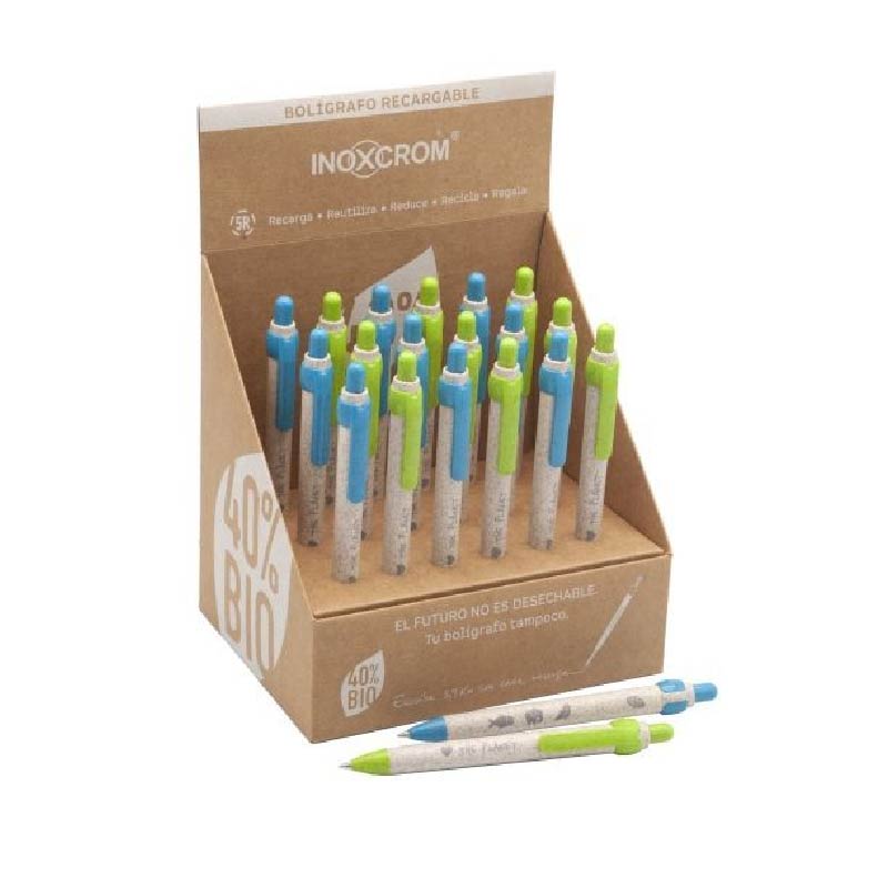 Bolígrafo recargable que reduce el uso del plástico al utilizar un 40% de paja, procedente de excedentes agrícolas.