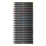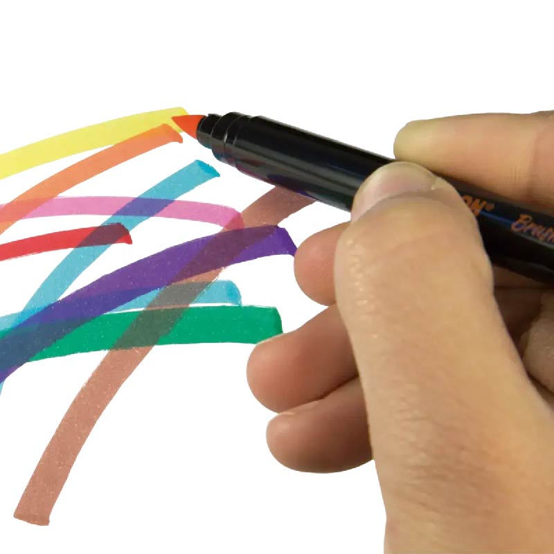 Rotuladores que ofrecen un trazo de pincel desde 0,5mm a 4mm. Ideal para caligrafía y pintar con distintos trazos mezclando sus colores. 24 colores. Punta de fibra. Tinta a base de agua que proporciona unos colores brillantes de fácil aplicación y mezclables entre sí. Puede lavarse fácilmente sobre la mayoría de tejidos (poner la prenda en remojo en agua fría durante una hora y lavar a máquina, también con agua fría). Con capuchón de seguridad ventilado.