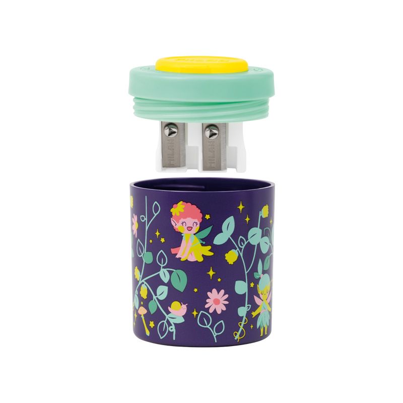 Sacapuntas doble (uno estándar y otro MAXI) con depósito. Diseño COLLECTION, edición especial Fairy Tale. Cómodo tapón con rosca. El sacapuntas tiene una cuchilla de acero al carbono afilada y resistente, ideal para todo tipo de lápices. Artículo con cuchilla de seguridad. Este sistema evita que se pueda separar la hoja del cuerpo del sacapuntas, siendo óptimo para uso escolar. Colores surtidos disponibles: violeta, verde y rosa.