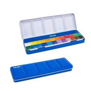 Estuche metálico con 12 pastillas medios godet de acuarela MILAN Art, con bandeja abatible y anilla posterior. Sus colores se obtienen a partir de pigmentos inocuos, son opacos y ...